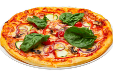 пицца-соус, моцарелла, шампиньоны, цукини, перец, черри, лук, чеснок, шпинат