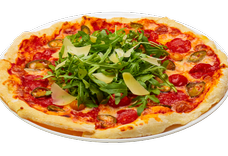 пицца-соус, моцарелла, черри, руккола, пармезан, пепперони, халапеньо